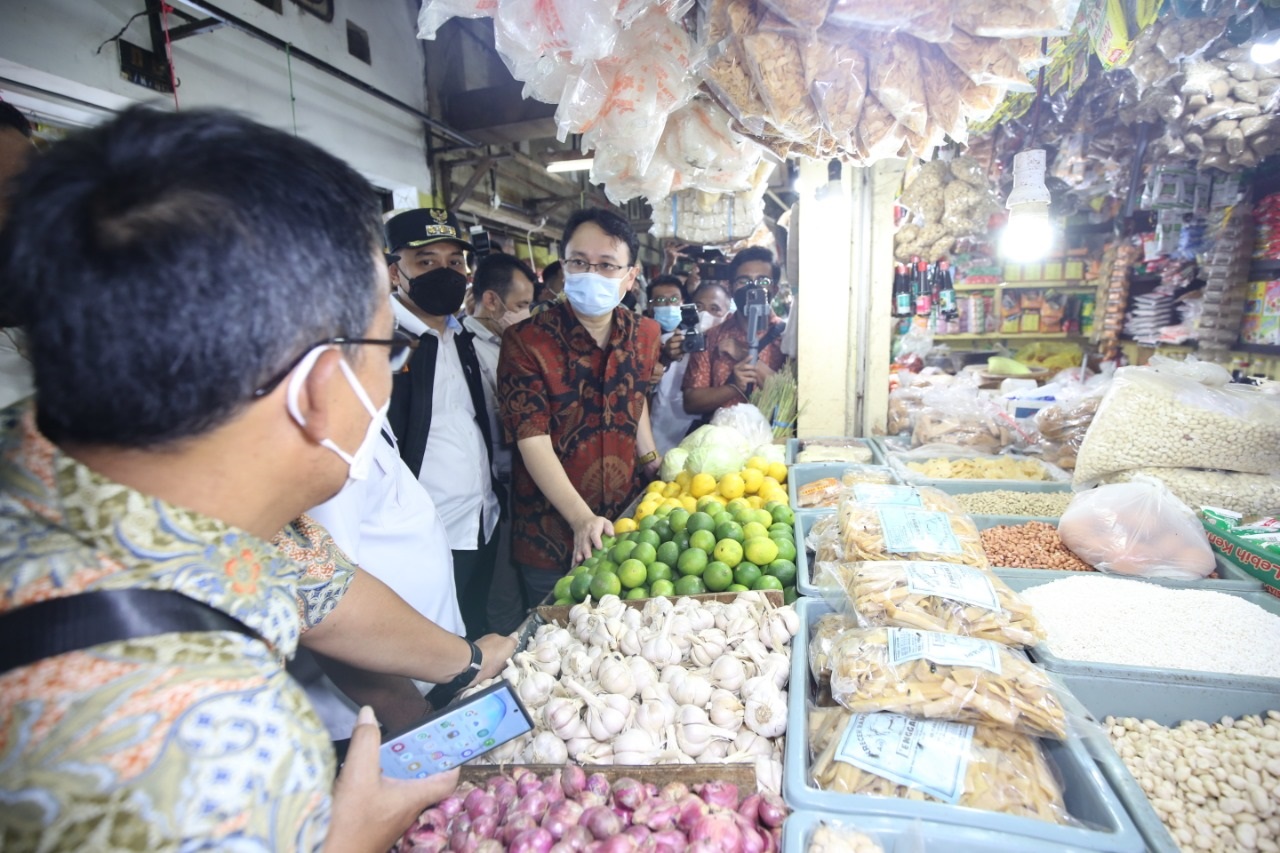 primaradio.id – Wali Kota Surabaya, Eri Cahyadi bersama Wakil Menteri Perdagangan RI, Jerry Sambuaga beserta Dinas Perdagangan (Disperindag) Jawa Timur, sidak harga bahan kebutuhan pokok di Pasar Wonokromo, Surabaya, Selasa (7/12/2021).