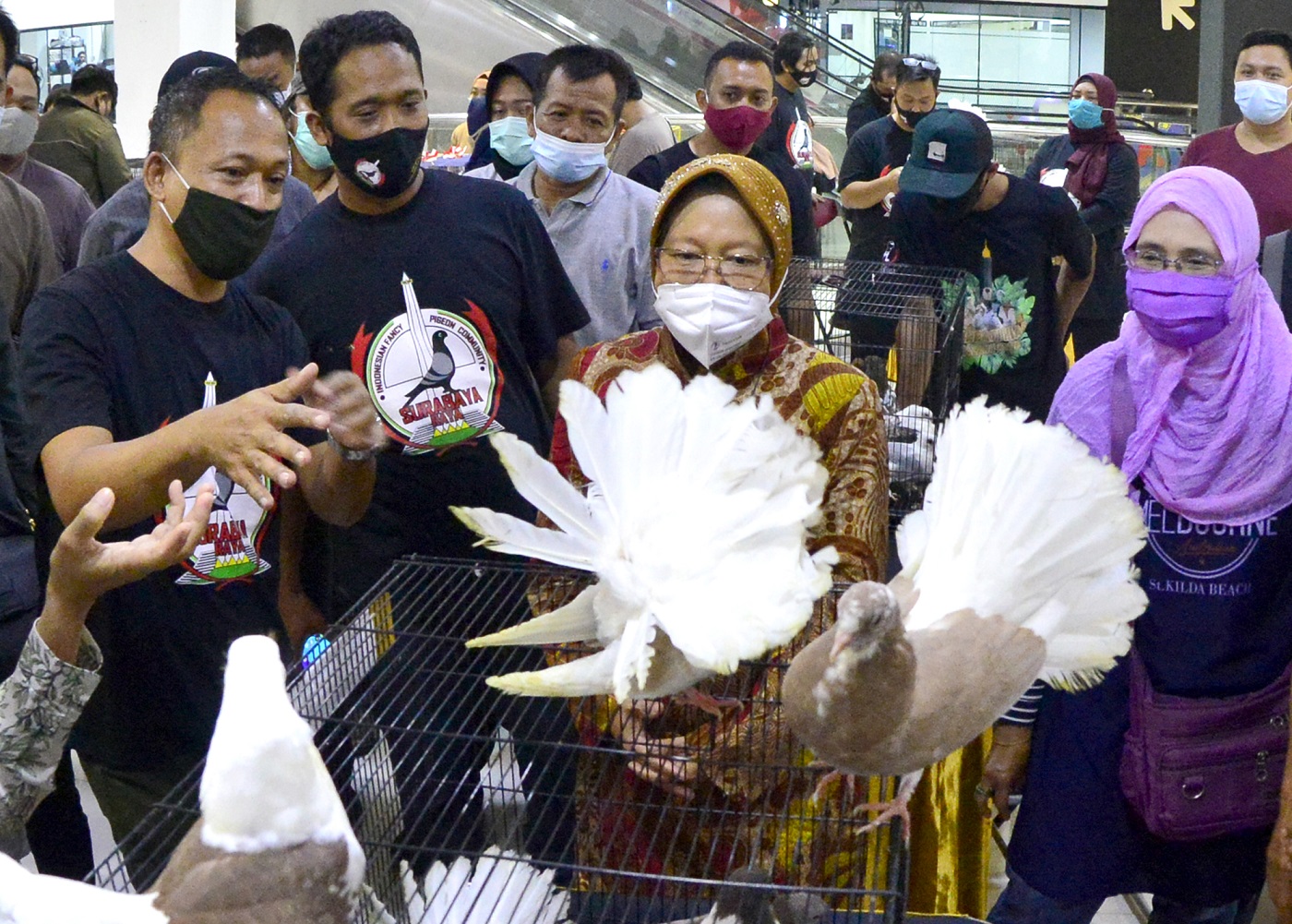 primaradio.id – Wali Kota Surabaya Tri Rismaharini membuka Pameran dan Bazar Merpati Hias dan Endemik yang digelar di BG Junction, Surabaya, Minggu (29/11/2020). Acara yang digelar oleh Indonesian Fancy Pigeon Community (iFPC) Surabaya Raya itu memajang berbagai jenis burung merpati yang unik-unik dari berbagai negara.