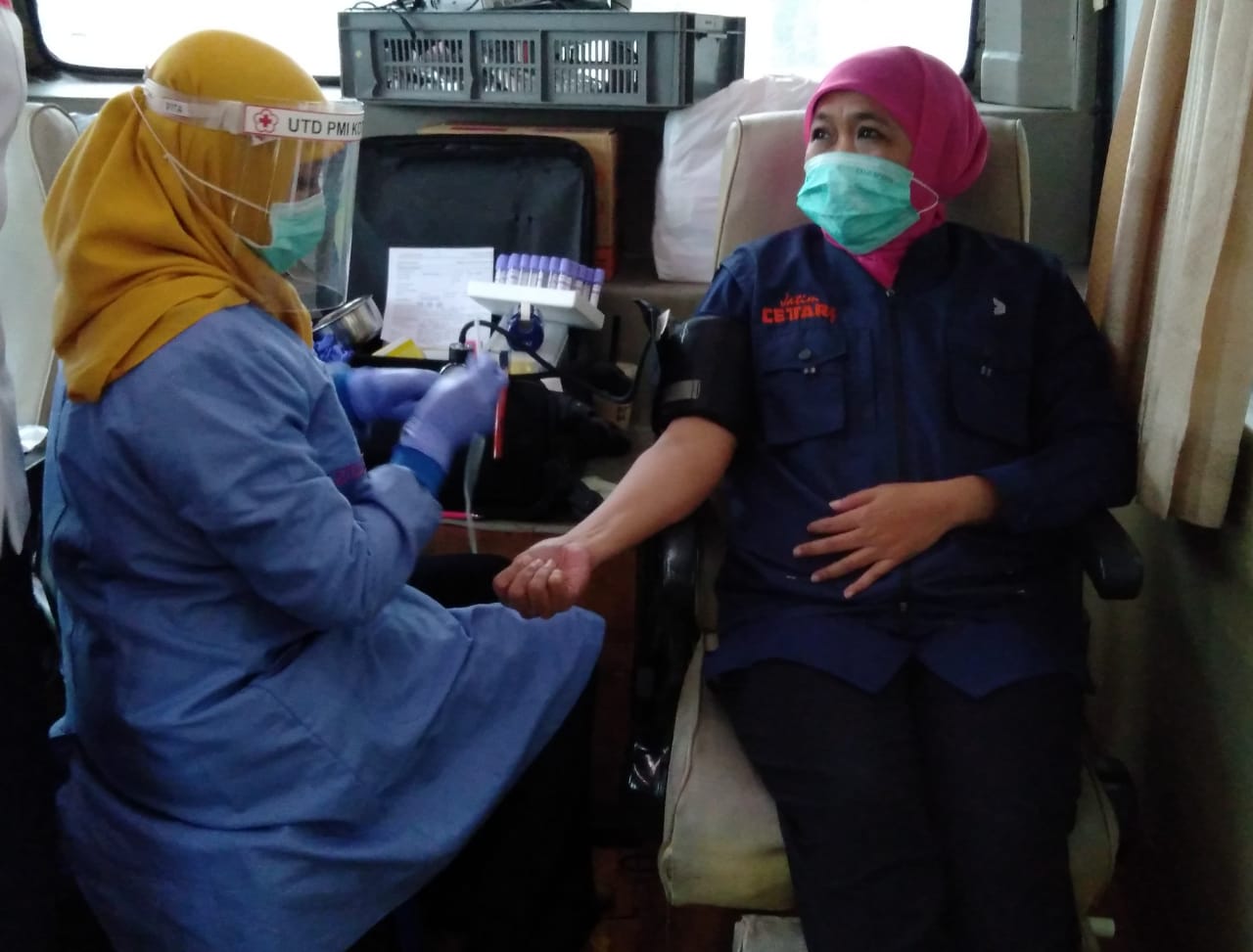 “PMI mengaku mengalami penurunan jumlah pendonor hinhga 60 persen selama wabah Covid-19, “tambah Khofifah.