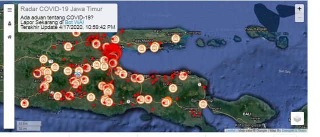 primaradio.id – Kini masyarakat Jawa Timur bisa mengecek kondisi sebaran virus Corona atau Covid-19 di sekitarnya secara real time melalui radarcovid19.jatimprov.go.id. Sejak diluncurkan dua hari lalu, pada Selasa (13/4/2020) radarcovid19.jatimprov.go.id sudah diakses ribuan pengunjung.