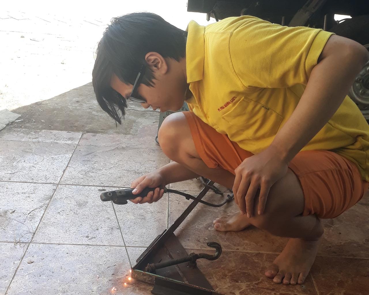 “Saya ngelas sejak tahun 2005, istilahnya tukang las panggilan mulut ke mulut. Jadi apapun besi yang bisa disambung, itu pekerjaan saya. Seperti bikin tralis, bikin pagar, pandai besi, dll. Untuk kisaran penghasilan ngelas tidak menentu, kadang 500 ribu sebulan, kadang lebih.” Ungkap Joni sang Ayah.
