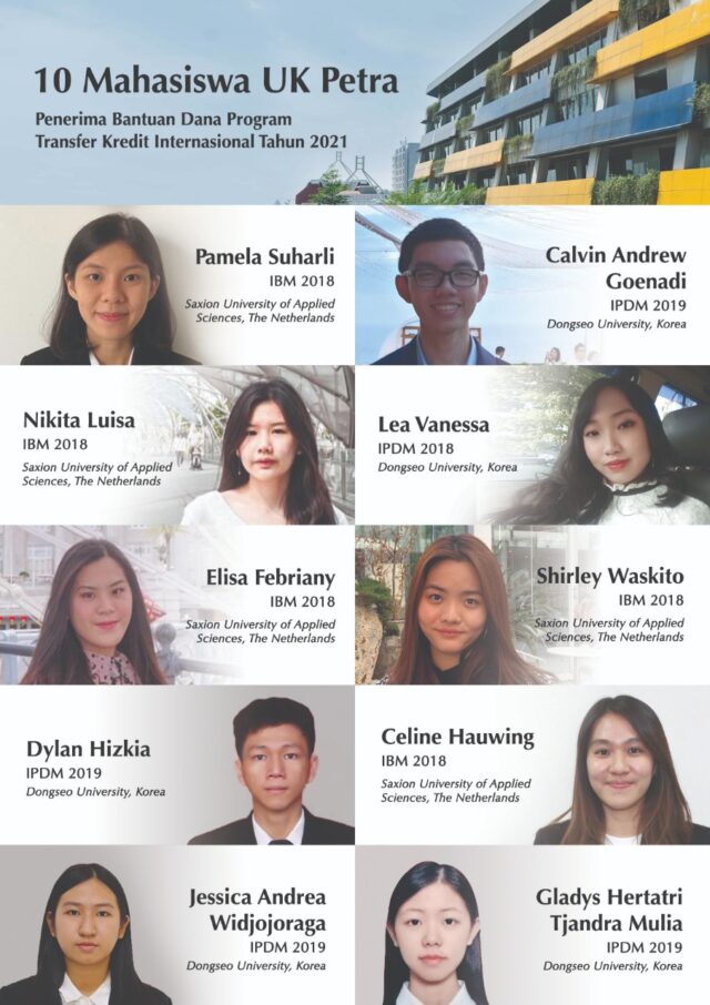 primaradio.id – Sebanyak 10 mahasiswa Universitas Kristen Petra (UK Petra) Surabaya berhasil mendapatkan Bantuan Pemerintah Program Transfer Kredit Internasional Tahun 2021. “Puji Syukur, UK Petra bisa lolos. Ini merupakan kesempatan yang sangat baik, semakin banyak mahasiswa yang bisa mendapatkan bantuan dari pemerintah terutama di masa seperti saat ini.”, urai Prof. Dr. Ir. Djwantoro Hardjito, M. Eng., selaku rektor UK Petra.