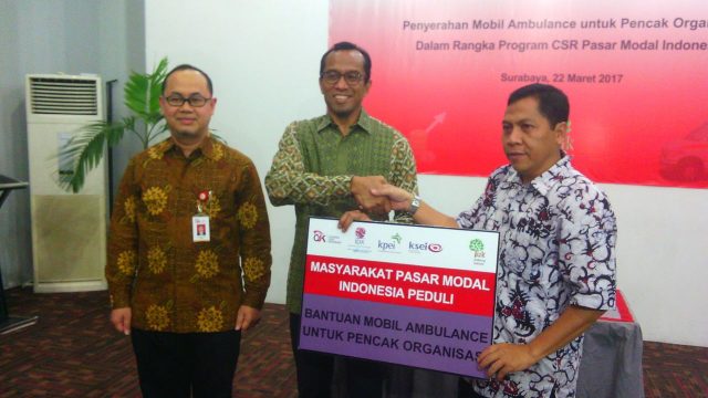 Sebagai langkah nyata dari pandangan tersebut, BEI telah mengadakan berbagai kegiatan dalam lingkup Tanggung Jawab Sosial Perusahaan di bidang pendididkan, kemasyarakatan, serta sumbangsih terhadap lingkungan. Kepedulian Pasar Modal Indonesia terhadap kemasyarakatan ditunjukkan dengan berbagai kegiatan, diantaranya kegiatan seperti ini, yakni pemberian bantuan mobil ambulance kepada masyarakat. Kali ini Bursa Efek Indonesia kantor Perwakilan Surabaya menyerahkan 1 (satu) unit Ambulance kepada Pencak Organisasi di Surabaya, pada Rabu 22 Maret 2017.