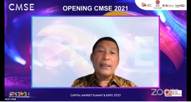 Direktur Utama BEI Inarno Djajadi menyampaikan, penyelenggaraan CMSE 2021 merupakan kegiatan yang bertujuan sebagai ajang pertemuan stakeholders pasar modal Indonesia dan masyarakat untuk dapat berbagi informasi terbaru serta teraktual. “Selama tiga hari acara, akan diselenggarakan webinar dan talk show dengan topik menarik dari narasumber yang kompeten. Diharapkan, CMSE 2021 dapat mendukung pencapaian target penambahan jumlah investor, perusahaan tercatat baru, serta meningkatkan penggalangan dana di pasar modal.” ujar Inarno dalam sambutan virtualnya di pembukaan acara CMSE 2021, Kamis (14/10).