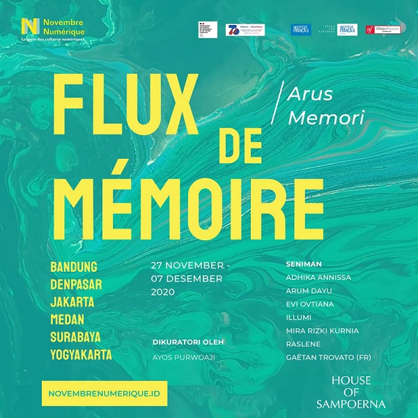 Pada kerja samanya yang keenam ini Galeri Paviliun HoS dan Institut Français d’Indonésie (IFI) berkolaborasi untuk mewujudkan sebuah pameran digital sebagai perwakilan dari kota Surabaya. Pameran yang diselenggarakan di 6 kota ini bertajuk “Flux de Mémoire’ / “Arus Memori” merupakan bagian dari program Novembre Numérique sekaligus menandai perayaan 70 tahun hubungan diplomatik Prancis – Indonesia berlangsung 27 November – 31 Desember 2021. Pameran dibuka serentak secara nasional pada 27 November 2020 dan dapat disaksikan melalui kanal Youtube IFI. Pameran virtual dapat diakses melalui www.novembrenumerique.id