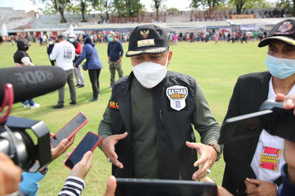 Oleh sebab itu, Wali Kota Eri kembali menegaskan, bahwa vaksinasi di G10N untuk masyarakat umum, mulai besok sementara dihentikan. Sebab, di G10N akan difokuskan untuk anak-anak SD-SMP se-Kota Surabaya. “Saya sampaikan kepada seluruh warga Surabaya, besok vaksinasi umum kita hentikan dulu, besok khusus untuk anak-anak SD dan SMP,” tegasnya.