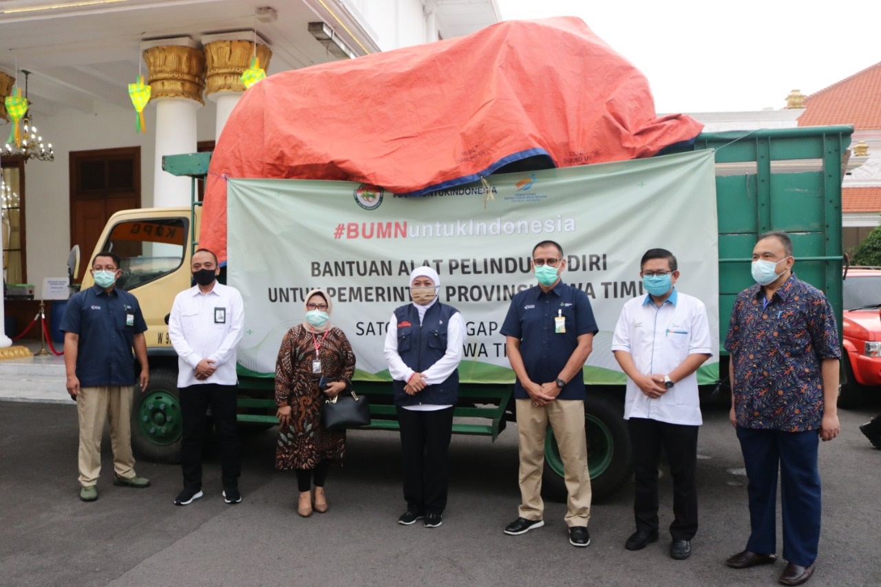 Bantuan Alat Pelindung Diri (APD) dan Fasilitas Penginapan untuk Tenaga Medis kepada Pemerintah Provinsi Jawa Timur berasal dari BUMN yang berada di Provinsi Jawa Timur seperti PT PAL Indonesia (Persero), PT Petrokimia Gresik, PT. SIER, PTPN X, Pelindo III, PT PG Rajawali, PT Telkom Regional V, PT Semen Indonesia, PT Pertamina MOR V, PT Pegadaian, PT DPS, dan PT ASABRI. (*)