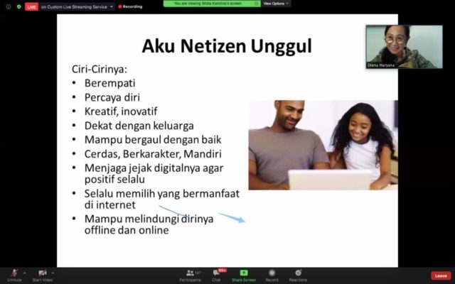 “Kita perlu mengenali sisi baik dan dan sisi negatif internet. Jika kita hidup dan memanfaatkan internet dengan sebaik-baiknya nilai positifnya bagi kita juga akan semakin banyak dan memudahkan kita dalam aktivitas sehari-hari. Kami harap melalui webinar ini, kita semua bisa jadi teman anak, dan bisa dilaksanakan dalam pendampingan bagi anak yang bermasalah dengan internet,” tutur Nahar.