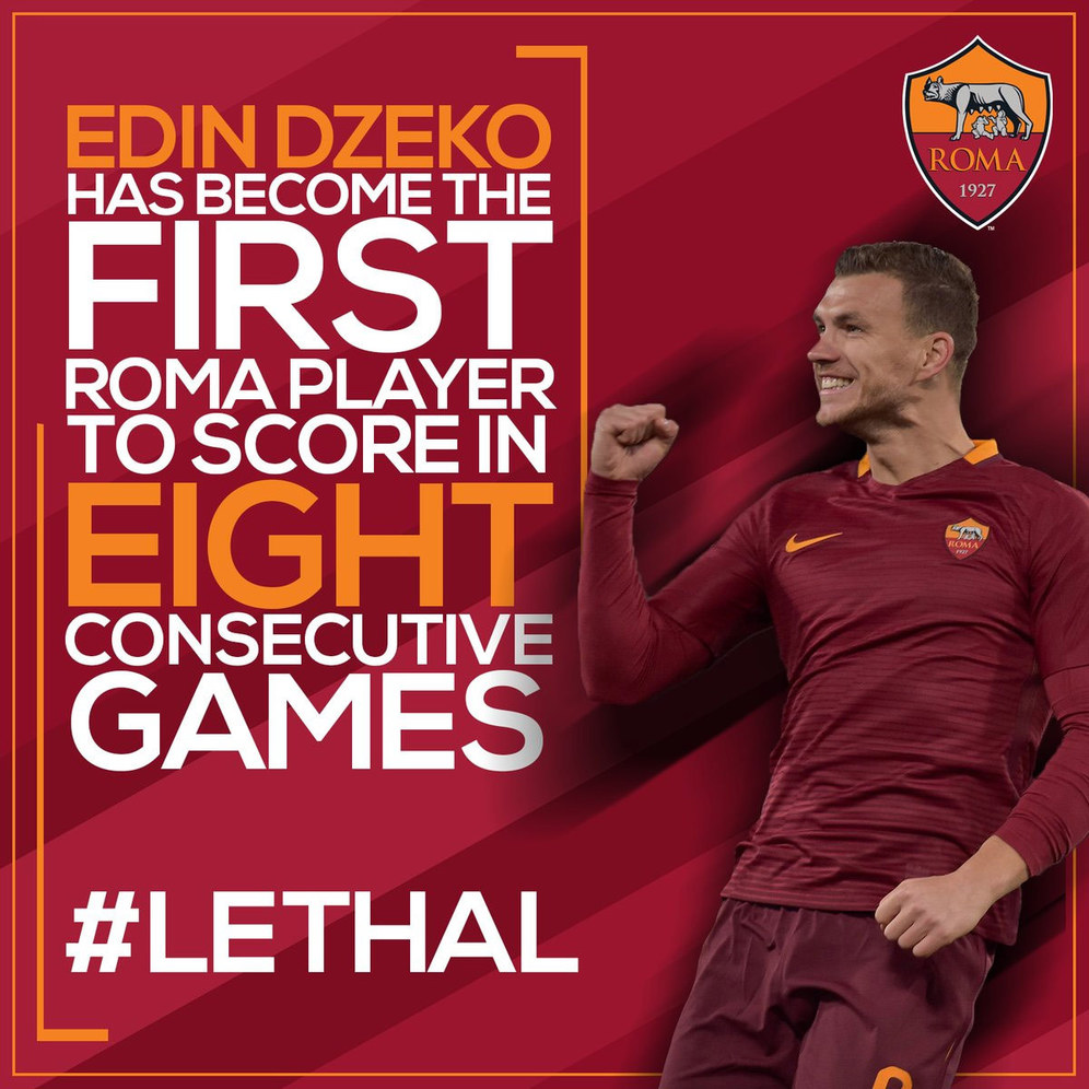 Ya, satu tambahan gol membuat pemain Bosnia berhasil mencetak delapan gol dalam delapan penampilan terakhirnya di semua ajang. Sepanjang sejarah Roma, hanya Dzeko yang pertama berhasil melakukannya.