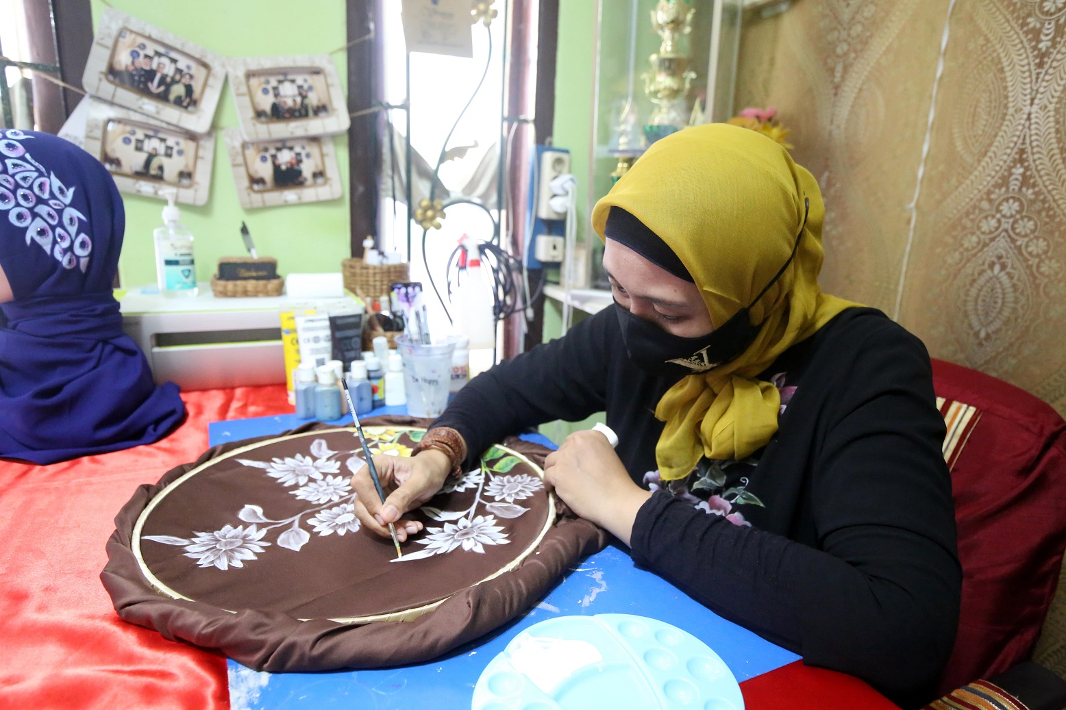Uniknya, untuk pengerjaan busana tidak hanya dilukis saja. Tetapi juga dipasang payet dan manik-manik agar lukisan di atas kain itu terlihat lebih hidup dan menonjol. Perempuan berusia 45 tahun ini pun memastikan, untuk proeses pengerjaannya tidak membutuhkan waktu yang lama. Menurutnya, untuk jilbab dalam satu hari dapat menyelesaikan satu pcs. Sedangkan, untuk masker dalam sehari bisa menyelesaikan sekitar lima buah.