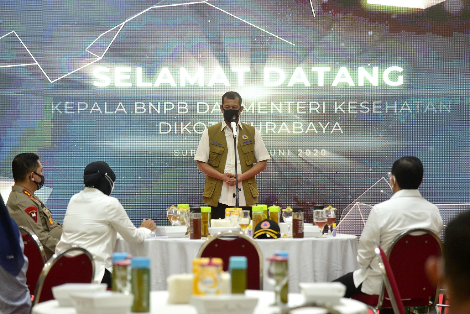 primaradio.id – Kepala Badan Nasional Penanggulangan Bencana (BNPB) Pusat, Letjend TNI Doni Monardo menyanjung langkah yang dilakukan oleh Pemerintah Kota Surabaya dalam menangani wabah Covid-19. Hal itu disampaikannya saat berkunjung ke Balai Kota Surabaya bersama Menteri Kesehatan Letjend TNI (pur) Dr. dr Terawan Agus Putranto.