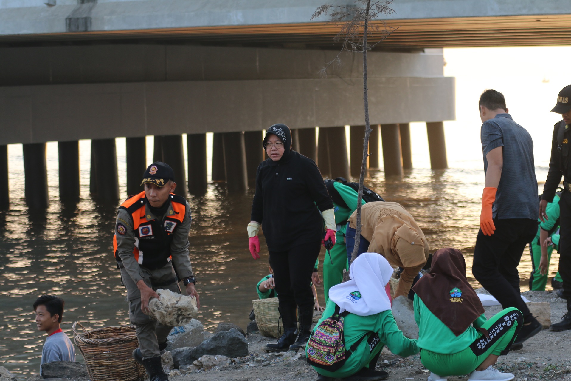 Kerja bakti itu dibagi menjadi delapan zona dan Wali Kota Risma ikut kerja bakti di kaki jembatan Suramadu. Bersih-bersih sampah itu ditimbang dan menghasilkan sebanyak 23,5 ton sampah. Selain bersih-bersih sampah, saat itu juga dilakukan penanaman pohon cemara udang sebanyak 500 pohon yang tersebar di masing-masing zona.