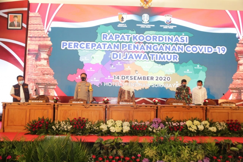 Hal itu disampaikan gubernur saat rapat koordinasi percepatan penanganan Covid-19 di Jatim bersama Kapolda Jatim, Irjen Pol Nico Afinta dan Pangdam V/Brawijaya, Mayjen TNI Suharyanto, Senin (14/12/2020) malam di Surabaya.