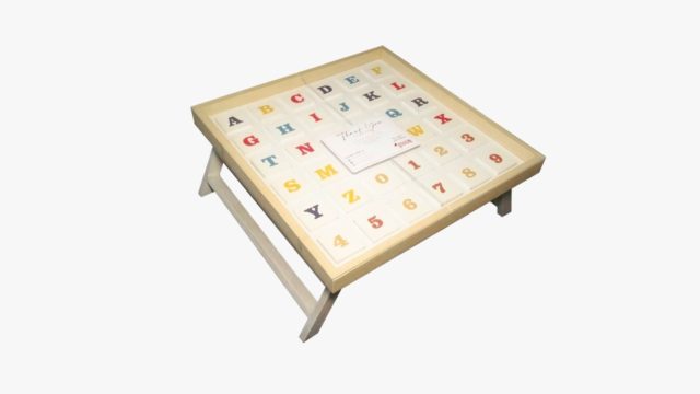 “Kami menciptakan ide membuat puzzle table. Meja lipat ini bisa digunakan sebagai permainan anak sekaligus sebagai alas. Biasanya desain meja mengunakan alas yang solid sehingga tidak bisa digunakan untuk hal lainnya. Kemudian kelebihannya bisa menghemat space”, urai Grace.