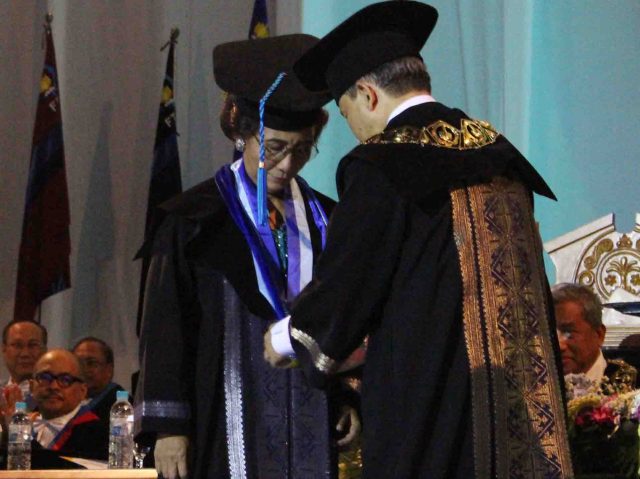 “Untuk saya pribadi sebetulnya tidak memerlukan itu (gelar H.C). Tapi saya pikir, sebagai seorang profesional, dan cinta saya pada laut, dan pertanggungjawaban saya sebagai seorang pejabat negara, legitmasi ini sangat penting untuk meneruskan public policy yang dibuat oleh KKP untuk diteruskan dan dilaksanakan oleh bangsa kita,” kata Menteri susi.