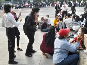 Sejak pukul 5 pagi WIB, di tengah Taman Bungkul Surabaya terlihat ratusan anak remaja yang memakai baju putih hitam. Terkesan seperti sedang ada acara Training/Pelatihan Penataran dari sebuah Perusahaan.