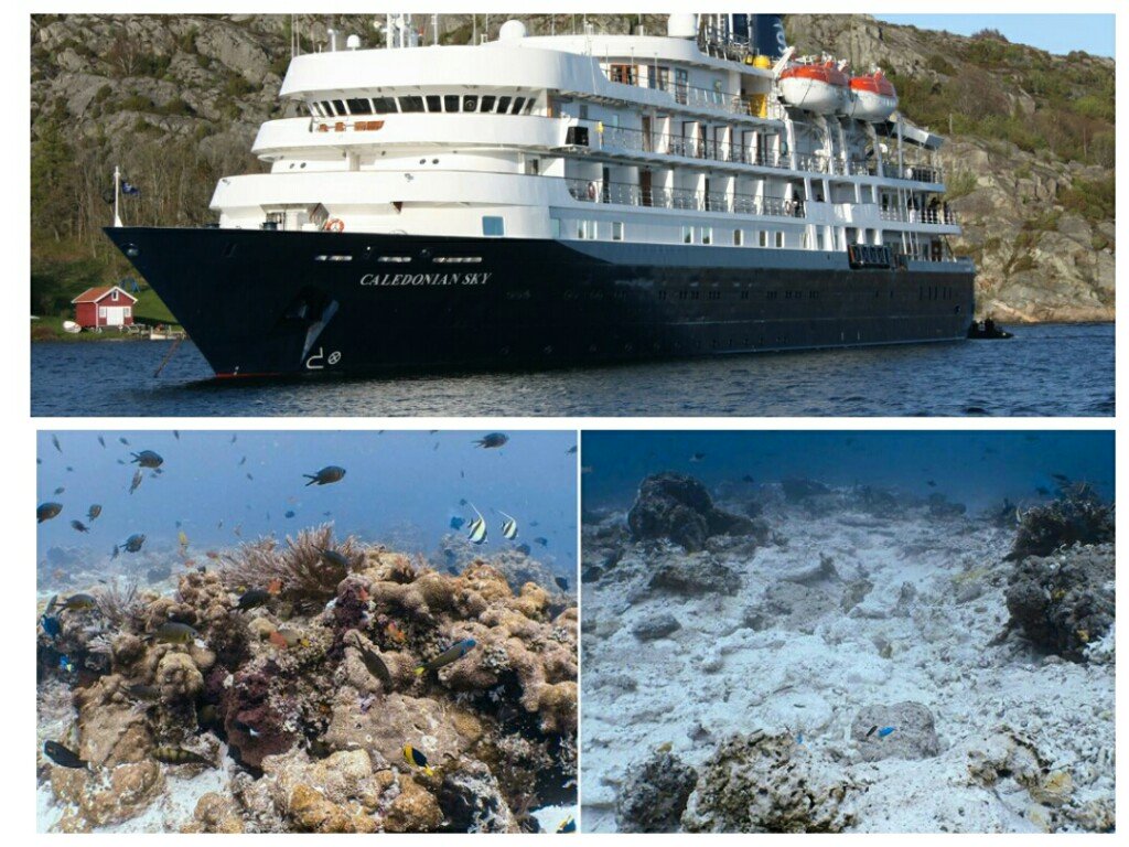 Berdasarkan penghitungan Kementerian Lingkungan Hidup dan Kehutanan, kapal pesiar milik perusahaan yang bermarkas di Inggris tersebut, Caledonian Sky, telah menghancurkan sekitar 13.270 meter persegi zona terumbu karang.