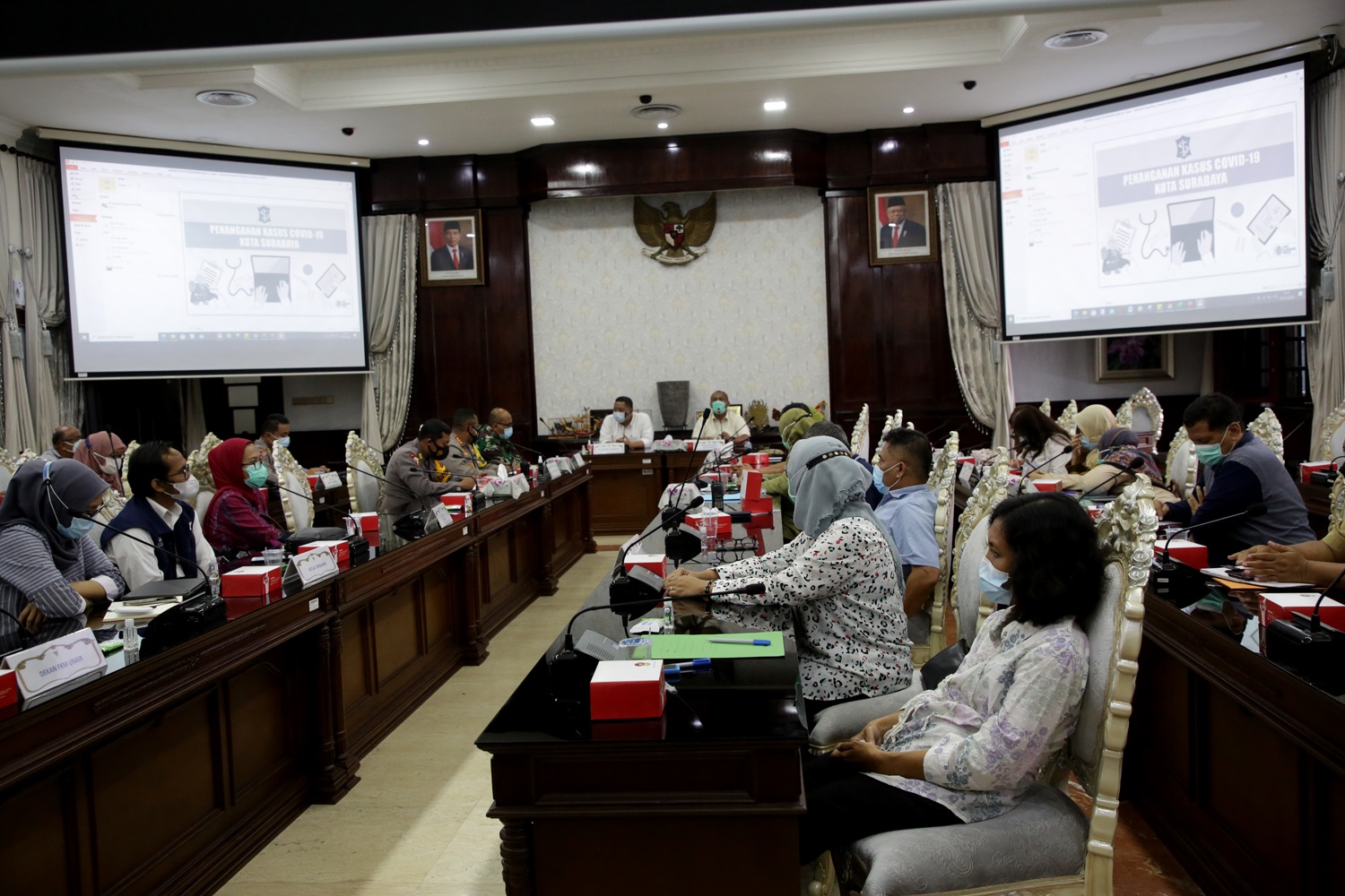 primaradio.id – Pemerintah Kota (Pemkot) Surabaya bersama instansi terkait menggelar rapat koordinasi di ruang rapat Wali Kota, Lobi Lantai II Balai Kota Surabaya, Selasa (29/12/2020). Rapat koordinasi ini terkait persiapan pengamanan jelang malam perayaan Tahun Baru dan pasca libur panjang. Ini dilakukan sebagai upaya mencegah terjadinya lonjakan kasus Covid-19 di Surabaya.