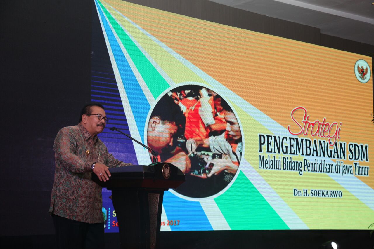 Demikian disampaikan Gubernur Jatim, Dr. H. Soekarwo yang lekat disapa Pakde Karwo saat memberikan paparan pada acara Seminar Nasional “ Revitalisasi SMK Untuk Produktivitas dan Daya Saing Bangsa” di Gedung Dyandra Convention Centre, Jln. Basuku Rahmad Surabaya, Selasa ( 29/8).