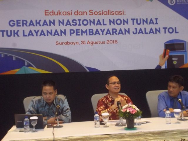 Kepala Divisi Sistem Pembayaran Bank Indonesia Jawa Timur, Hestu Wibowo, mengatakan, Jawa Timur merupakan salah satu provinsi yang memiliki ruas jalan tol yang cukup banyak namun masih rendah dalam hal transaksi pembayaran jalan tol. Untuk itu melalui Gerakan Nasional Non Tunai diharapkan transaksi pembayaran jalan tol secara non tunai meningkat drastis.