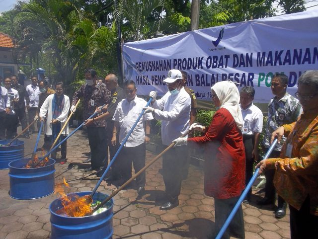 primaradio.id – Guna melindungi masyarakat dari konsumsi obat dan makanan ilegal, Badan Pengawas Obat dan Makanan RI bekerjasama dengan Pemprov Jatim memusnahkan obat dan makanan ilegasl, di Kantor BBPOM Surabaya.