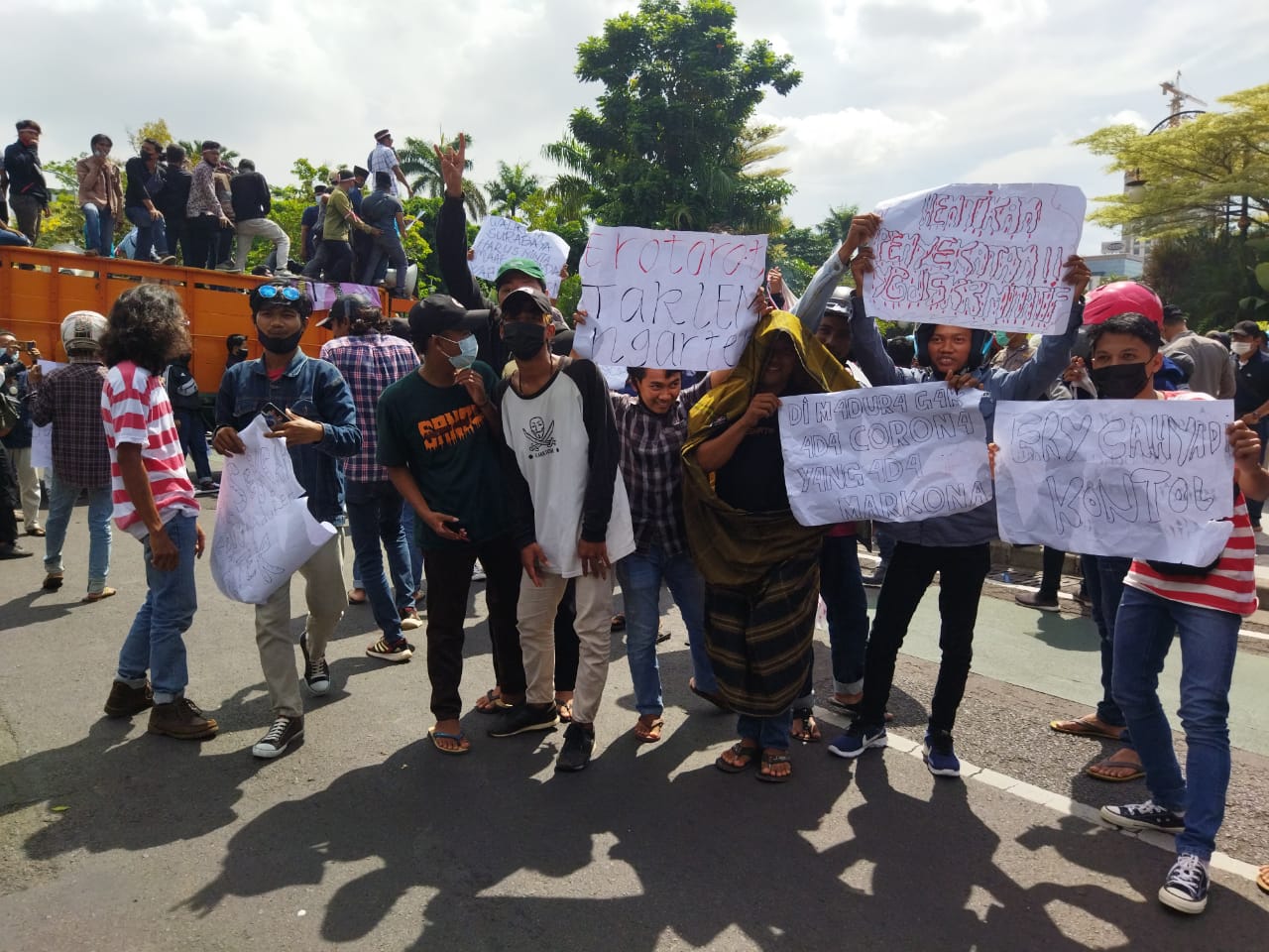 “Pemkot Surabaya mendiskreditkan masyarakat Madura, harusnya lebih tepat sasaran dan tidak tebang pilih melakukan swab antigen di Suramadu, “ungkap salah seorang pendemo saat menyampaikan orasinya.
