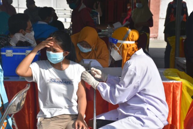 primaradio.id – Komandan Korem 084/Bhaskara Jaya Brigjen TNI Herman Hidayat Eko Atmojo menggelar Serbuan Vaksinasi kerjasama dengan pemerintah kota Surabaya dan TNI- Polri yang di targetkan untuk 5000 orang. Kegiatan Serbuan Vaksin bertempat di Lapangan Sepak Bola Gelora Sepuluh Nopember Tambak Sari Surabaya, Selasa (6/7/2021).