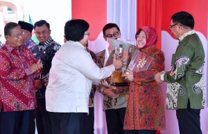 primaradio.id – Konsistensi Pemerintah Kota (Pemkot) Surabaya dalam membangun kota berbasis visi lingkungan, berbuah penghargaan Adipura Kencana di tahun 2017, terbaik untuk kategori kota metropolis. Piala Adipura Kencana yang diterima Wali Kota Surabaya, Tri Rismaharini, diserahkan oleh Menteri Lingkungan Hidup dan Kehutanan Siti Nurbaya serta Menko Perekonomian Darmin Nasution di Gedung Manggala Wanabakti, Jakarta, pada peringatan Hari Lingkungan Hidup Sedunia, Rabu (2/8/2017).