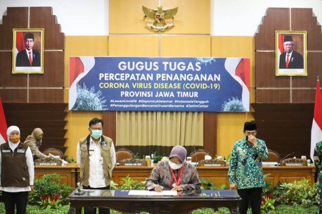 “Tapi harus kami lakukan. Mengingat warga kami juga harus melanjutkan kehidupan mereka untuk mencari nafkah,” kata Wali Kota Risma seusai penandatanganan.