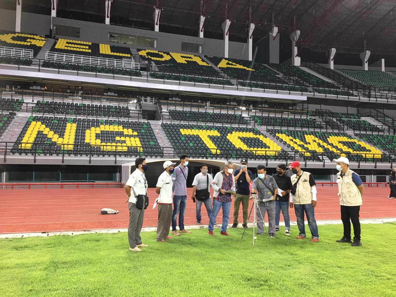 Pada kesempatan itu, jajaran dari Dinas Perumahan Rakyat dan Kawasan Permukiman, Cipta Karya dan Tata Ruang (DPRKP-CKTR) bersama tim ahli dari Institut Teknologi Sepuluh Nopember (ITS) memantau uji kelayakan lampu sesuai dengan standar yang telah ditetapkan oleh Federation of International Football Association (FIFA).