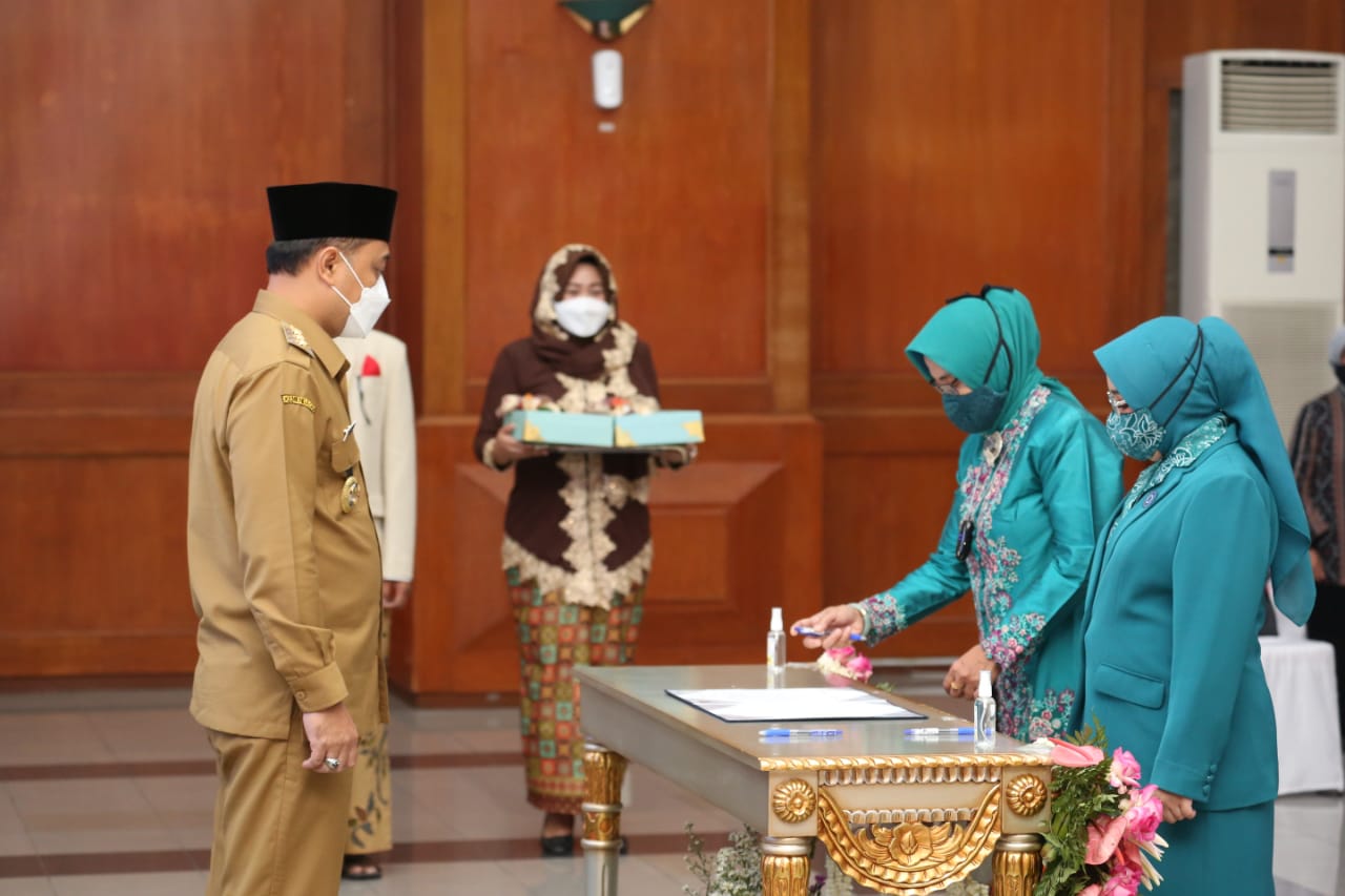 primaradio.id – Wali Kota Surabaya, Eri Cahyadi menggelar Serah Terima Jabatan Ketua beserta Pengurus Tim Penggerak PKK Kota Surabaya Masa Bakti 2021 – 2026, di lantai 6 Graha Sawunggaling, Kantor Pemkot Surabaya, Senin (31/5/2021). Kehadiran Tim Penggerak PKK yang baru ini diharapkan dapat membawa manfaat dan dampak yang besar terhadap pembangunan Kota Surabaya.