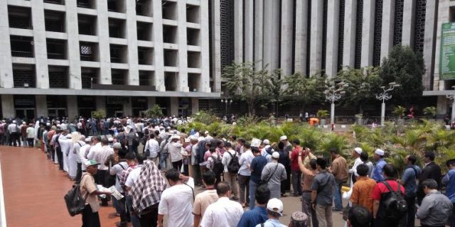 primaradio.id – Ratusan orang rela antre panjang ditengah teriknya matahari demi bisa bertemu dengan Raja Salman bin Abdulaziz di Masjid IStiqlal siang ini. Antrean panjang itu terjadi di pintu masuk Al Fattah Masjid Istiqlal, bahkan hingga mencapai 50 meter.